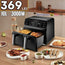 Friteuza cu aer cald 3000W, Cos Dublu, 10 litri, Termostat 80 - 200 °C, 8 programe predefinite, Negru