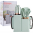 Acest set de bucătărie conține 19 ustensile esențiale fabricate din silicon de înaltă calitate, într-o nuanță elegantă de verde, adăugând un plus de stil și funcționalitate bucătăriei tale. Fiecare piesă este proiectată pentru a rezista la temperaturi ridicate, fiind perfectă pentru gătit zilnic, fără riscul de topire sau deformare. Siliconul moale protejează vasele antiaderente și nu zgârie suprafețele sensibile.